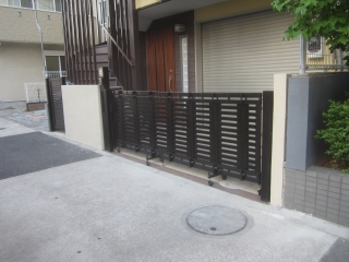伸縮門扉の交換、ポストユニットの設置を行い、